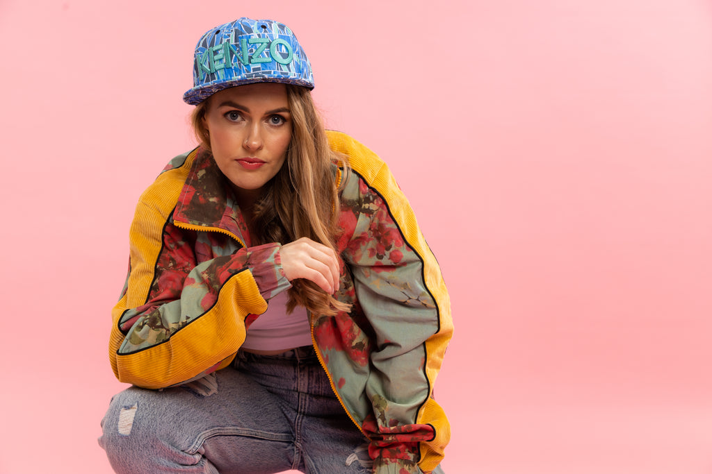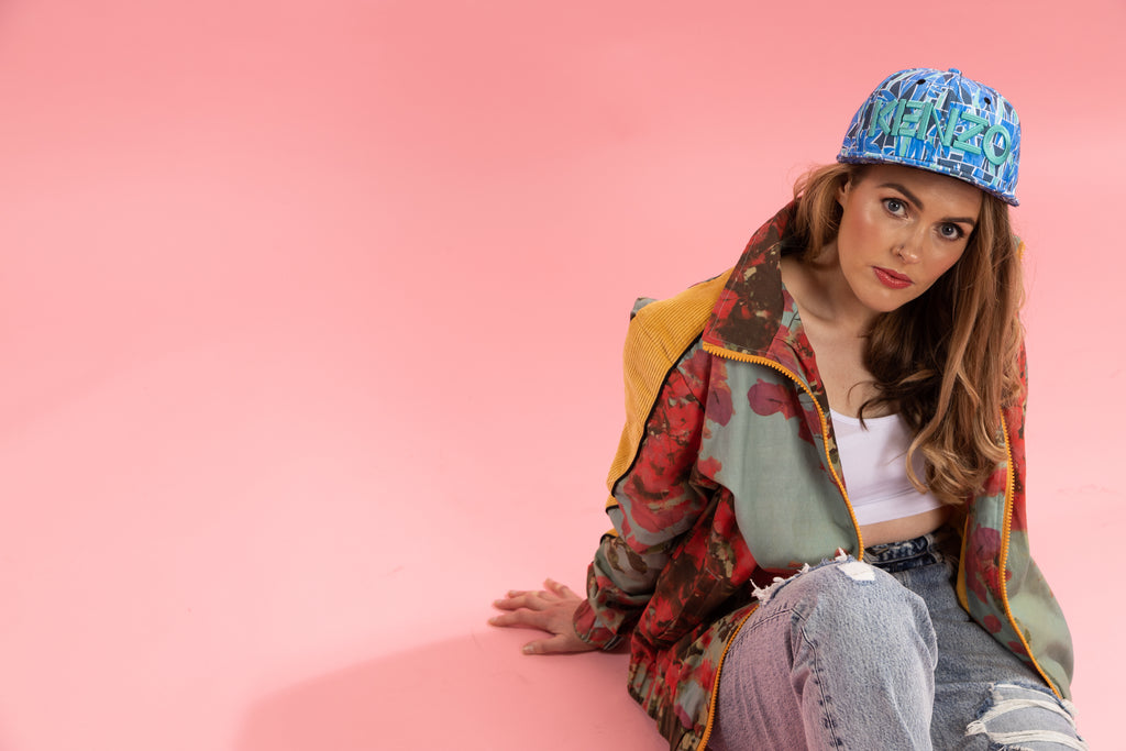 Beautiful bomber. Floral print, stand collar, slit pockets and zip closure.