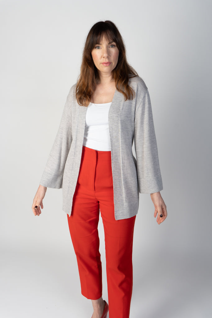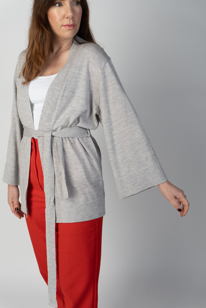 Merino Cardigan, with belt and cropped style sleeve. Wear open or belted over trousers, jeans or a dress. A perfect top for those Tran seasonal days.