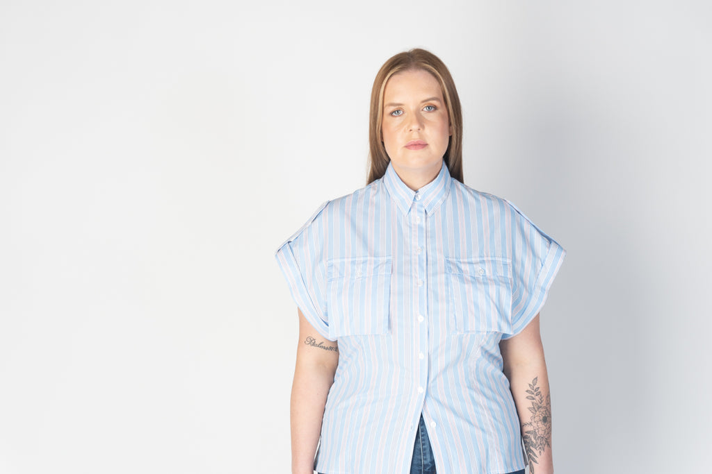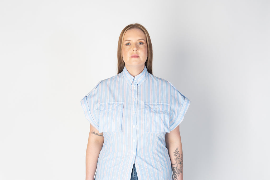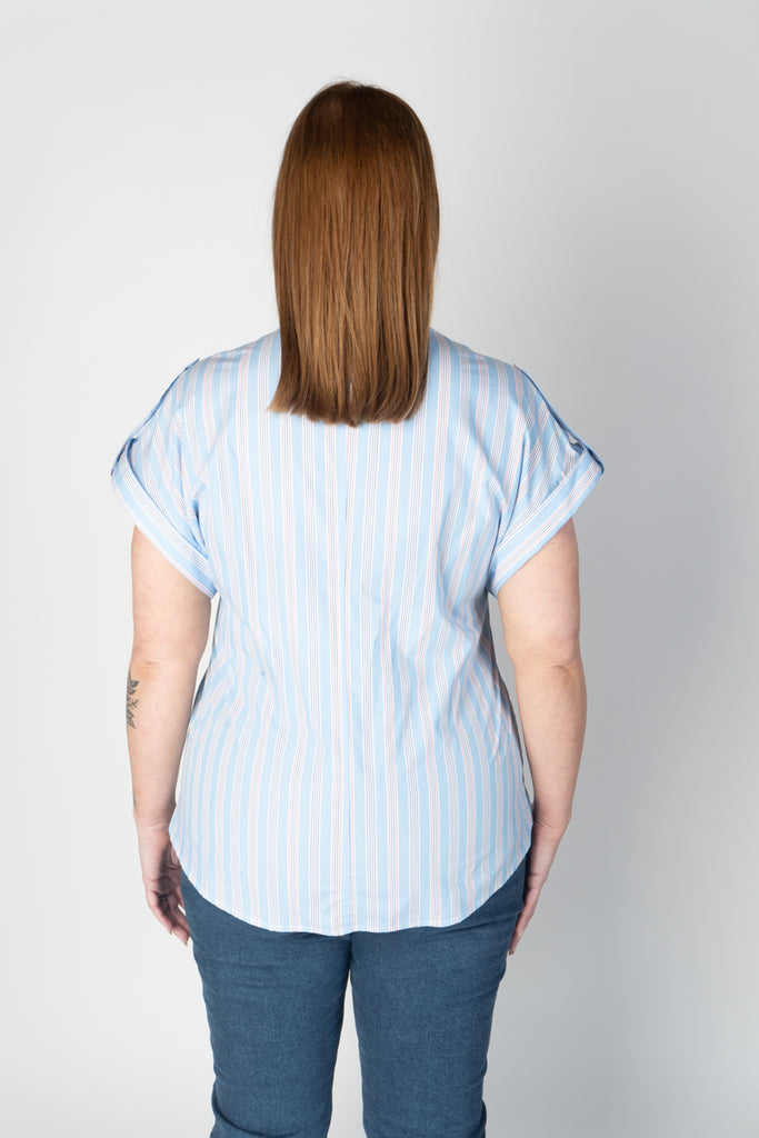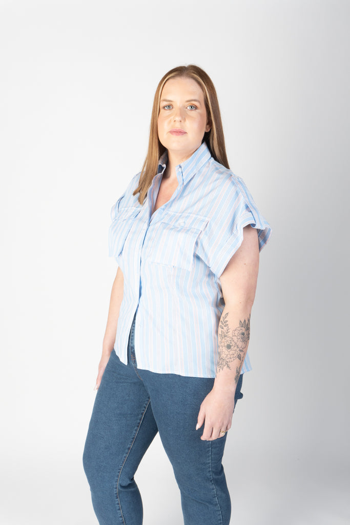 This fun short sleeve shirt is the perfect casual weekend-wear. Cute pockets and cropped sleeve to give this shirt a classic look with a fun edge.