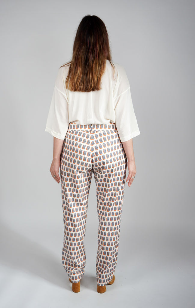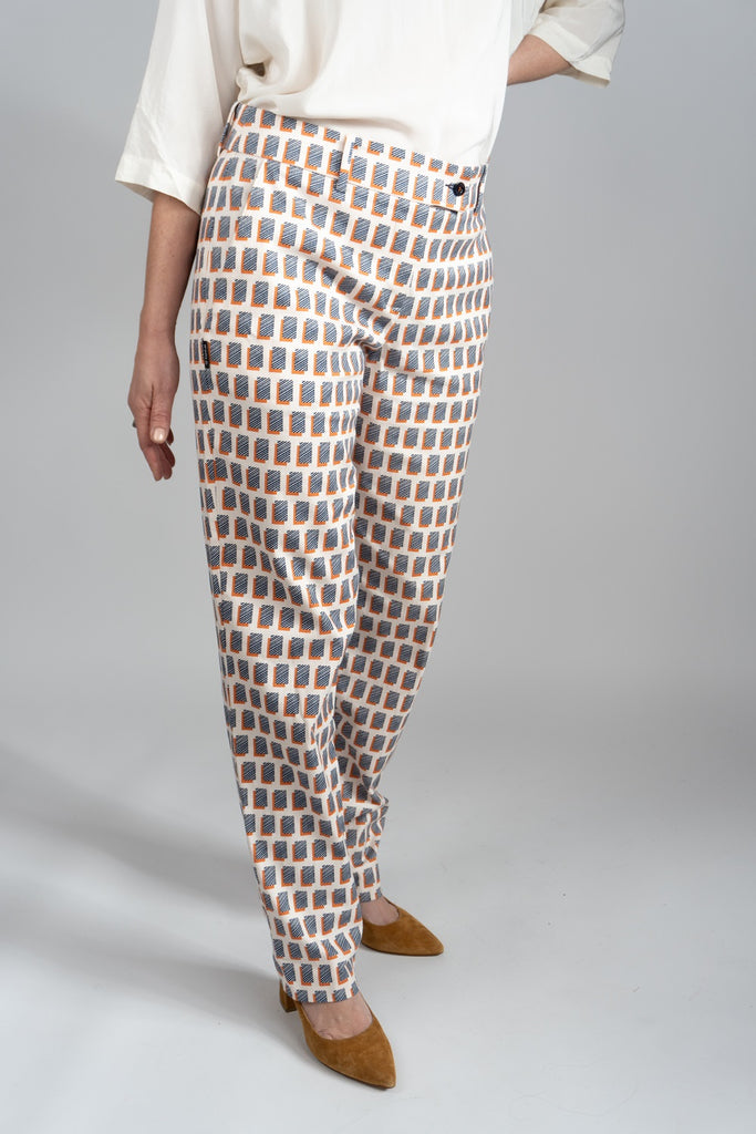 Fabulous orange and cream printed pants by World. Straight leg with zip and button fastening.